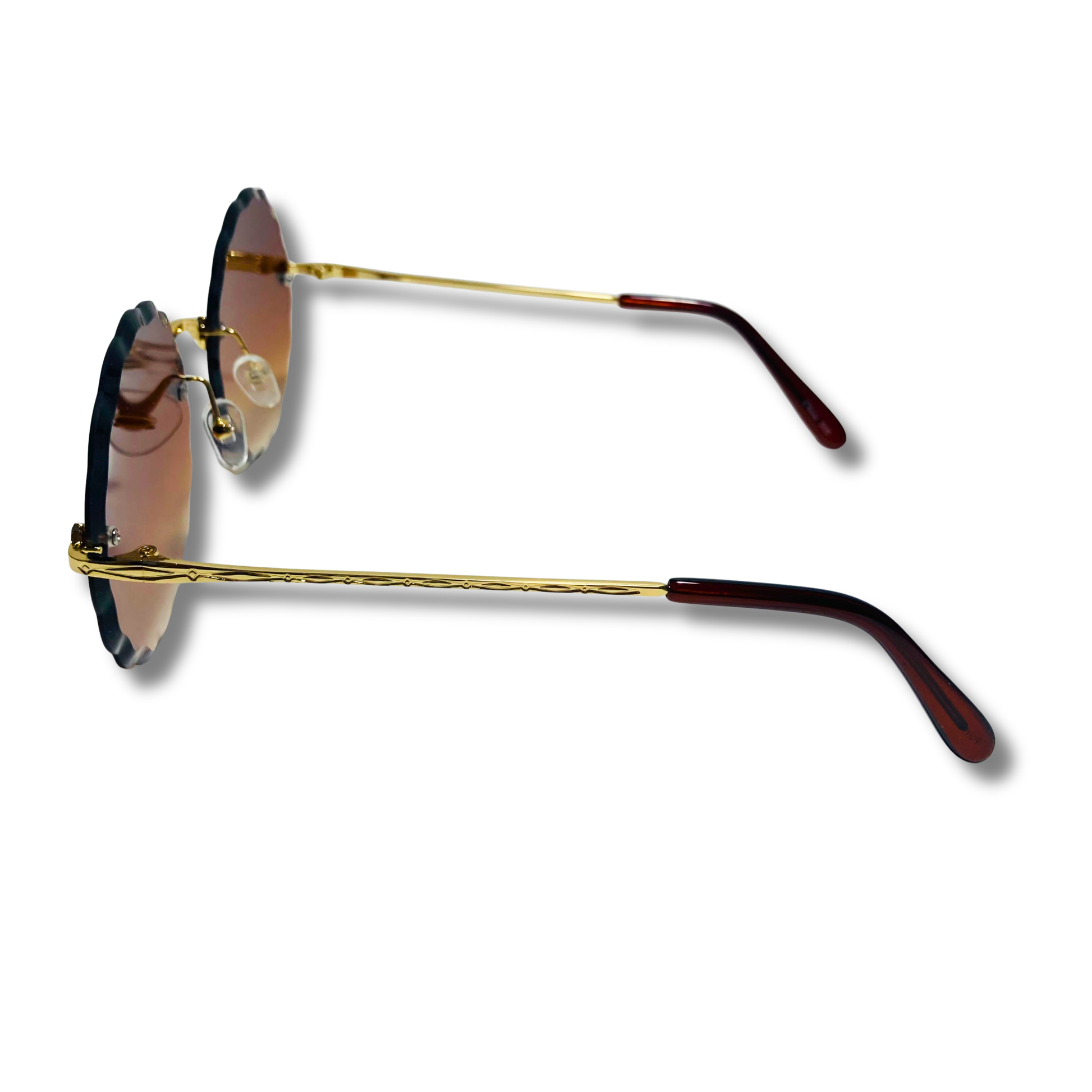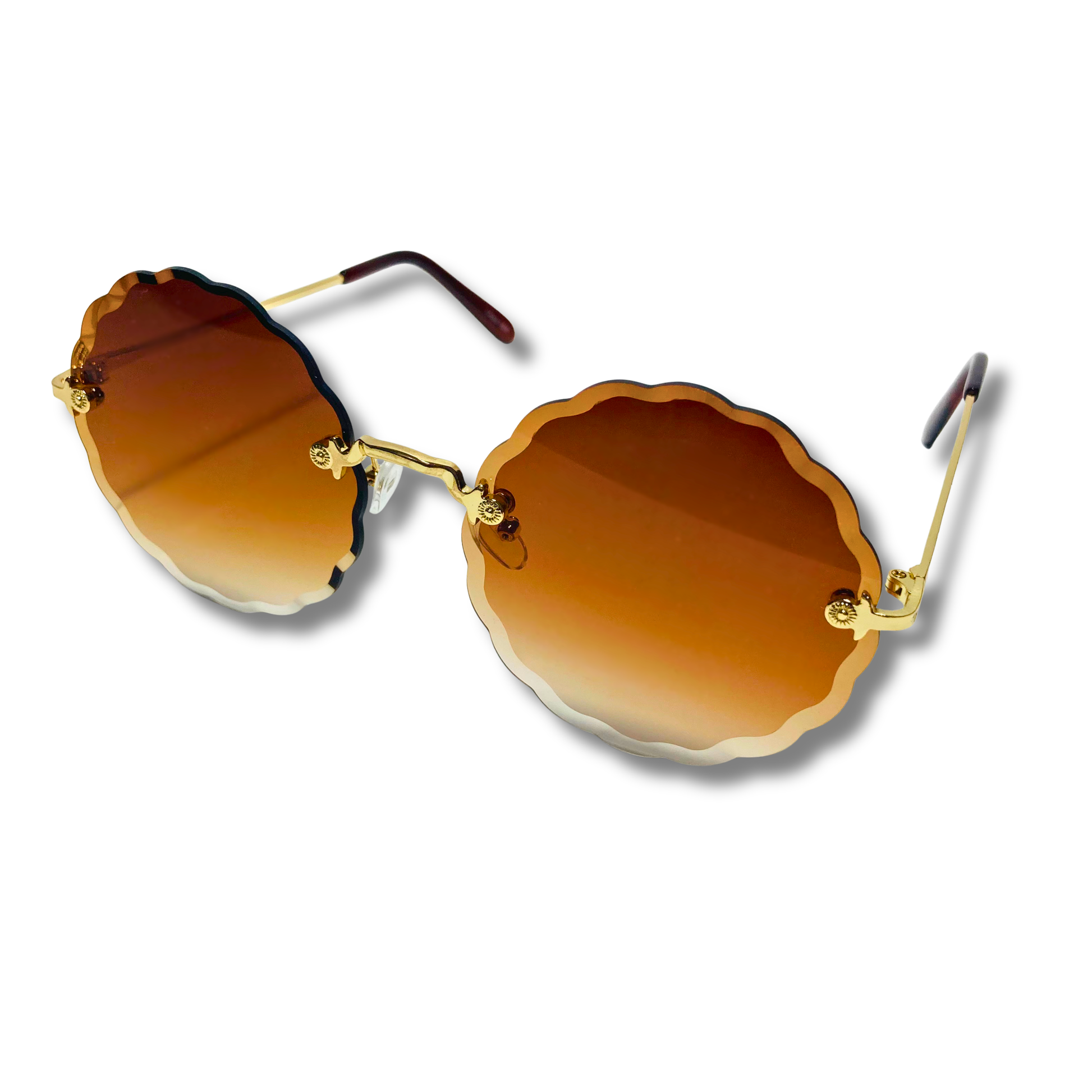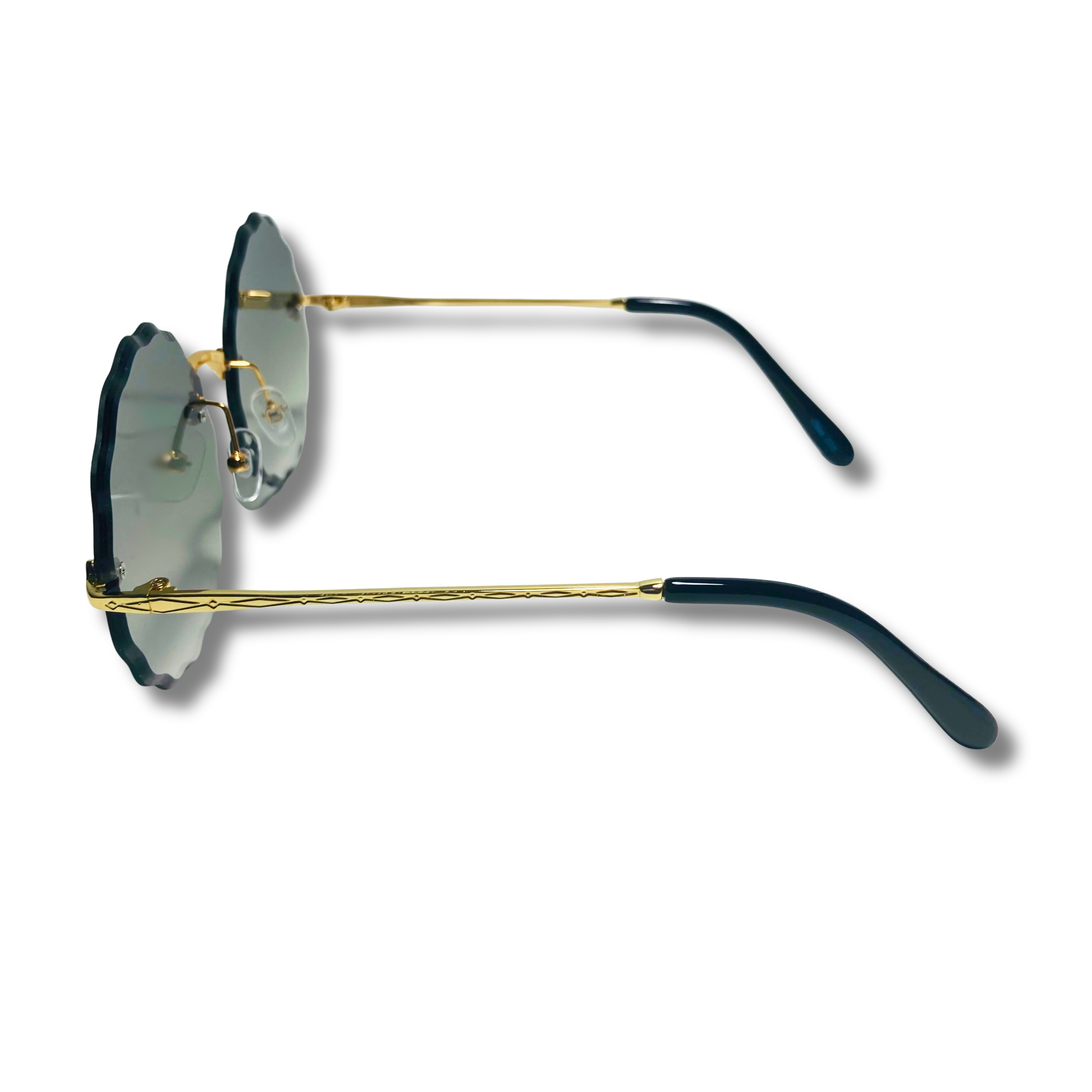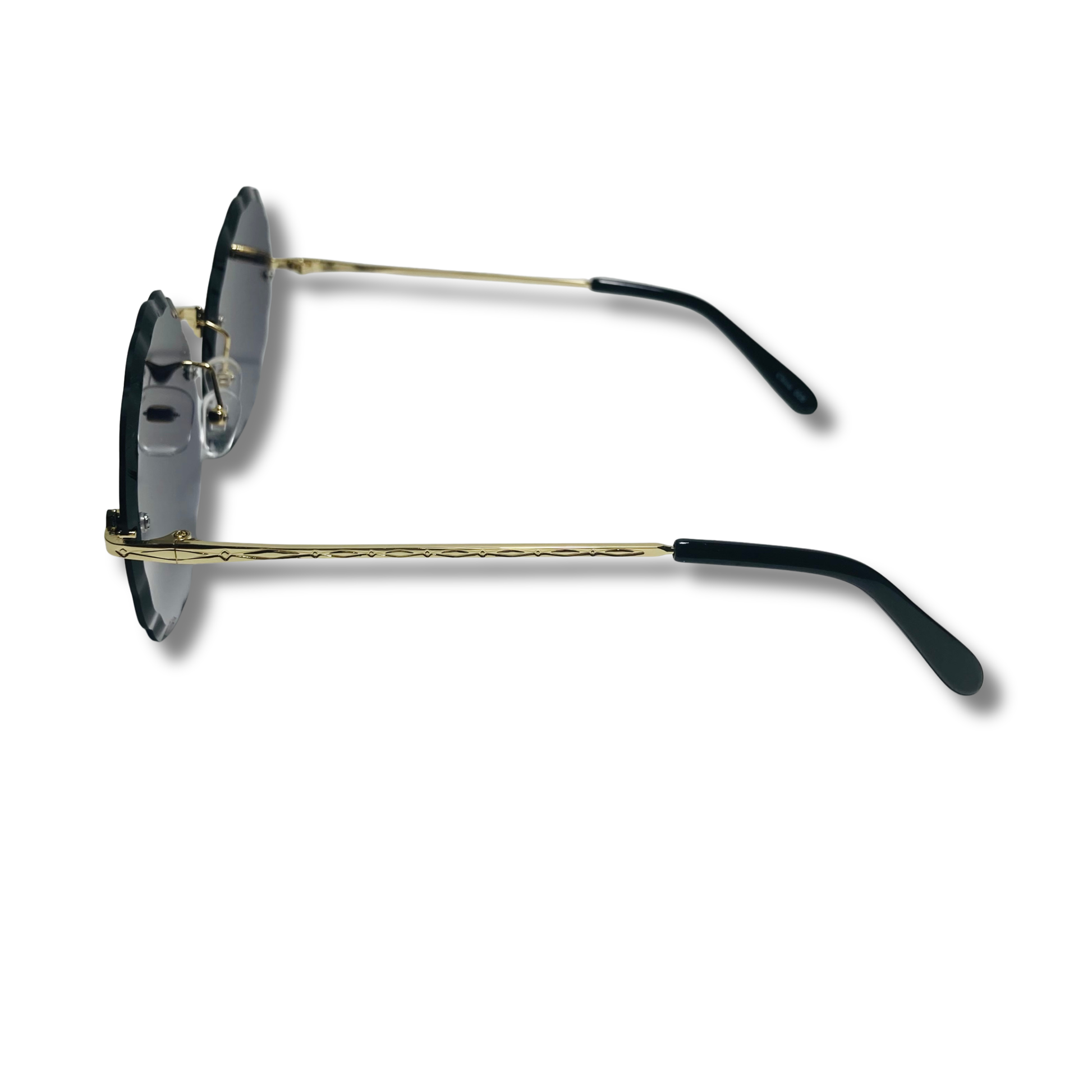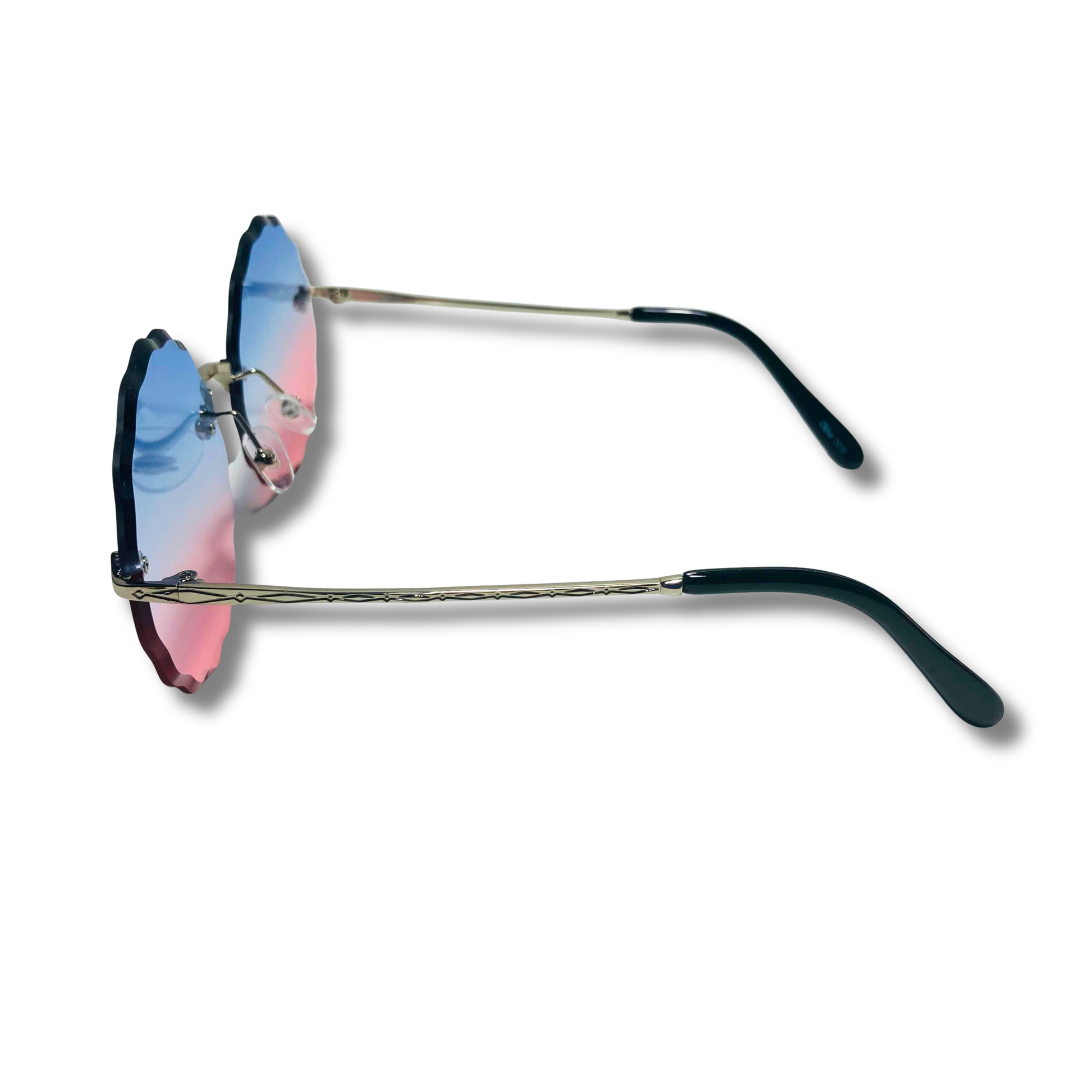 The Nimbus is wavy...it's literally wavy, that isn't our fault, that's just reality. These round sunglasses feature a wavy beveled lens with art-deco nose bridge and metal frame. Available in five colors: silver/purple, silver/pink/blue, gold/gradient black, gold/green, and gold/brown.